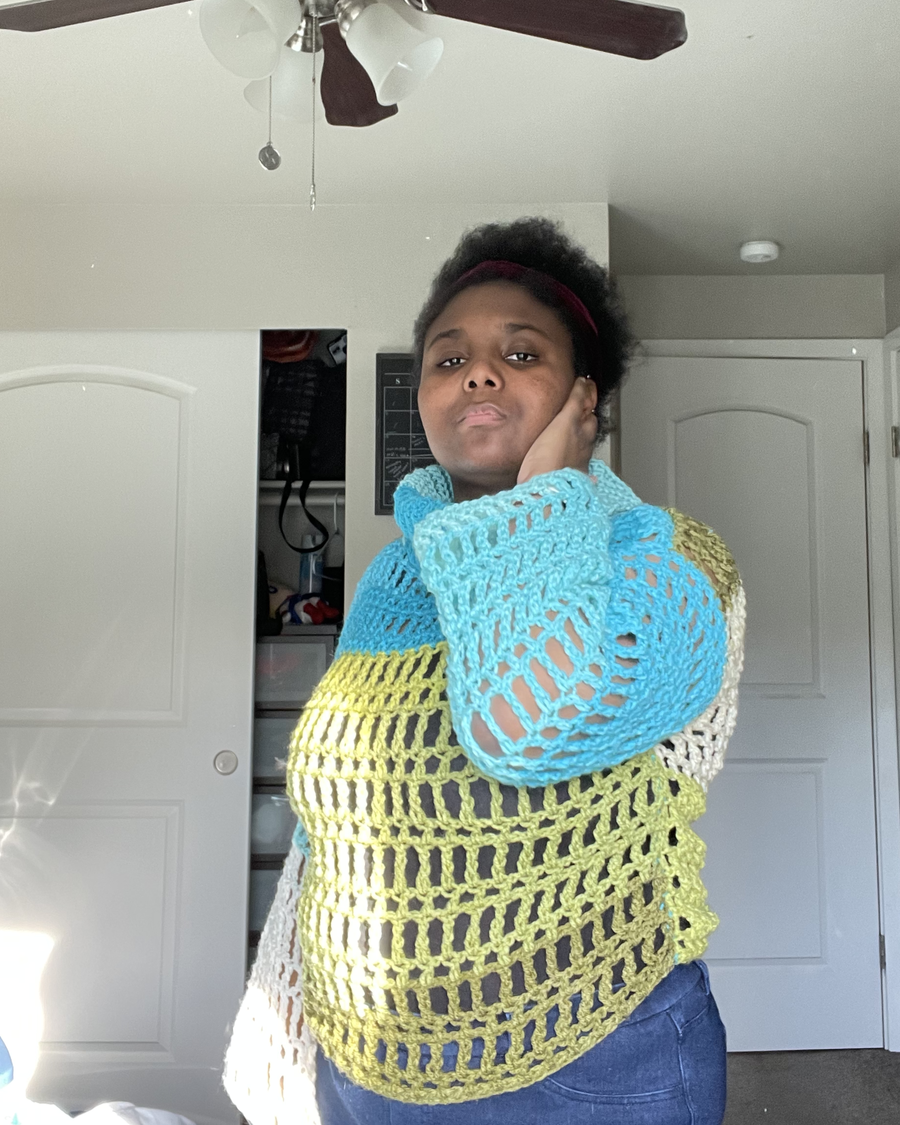 - I used 2 skeins of Baby Snuggle or Honey Bunny by Hobbii Yarn for an oversized M (each one of them);